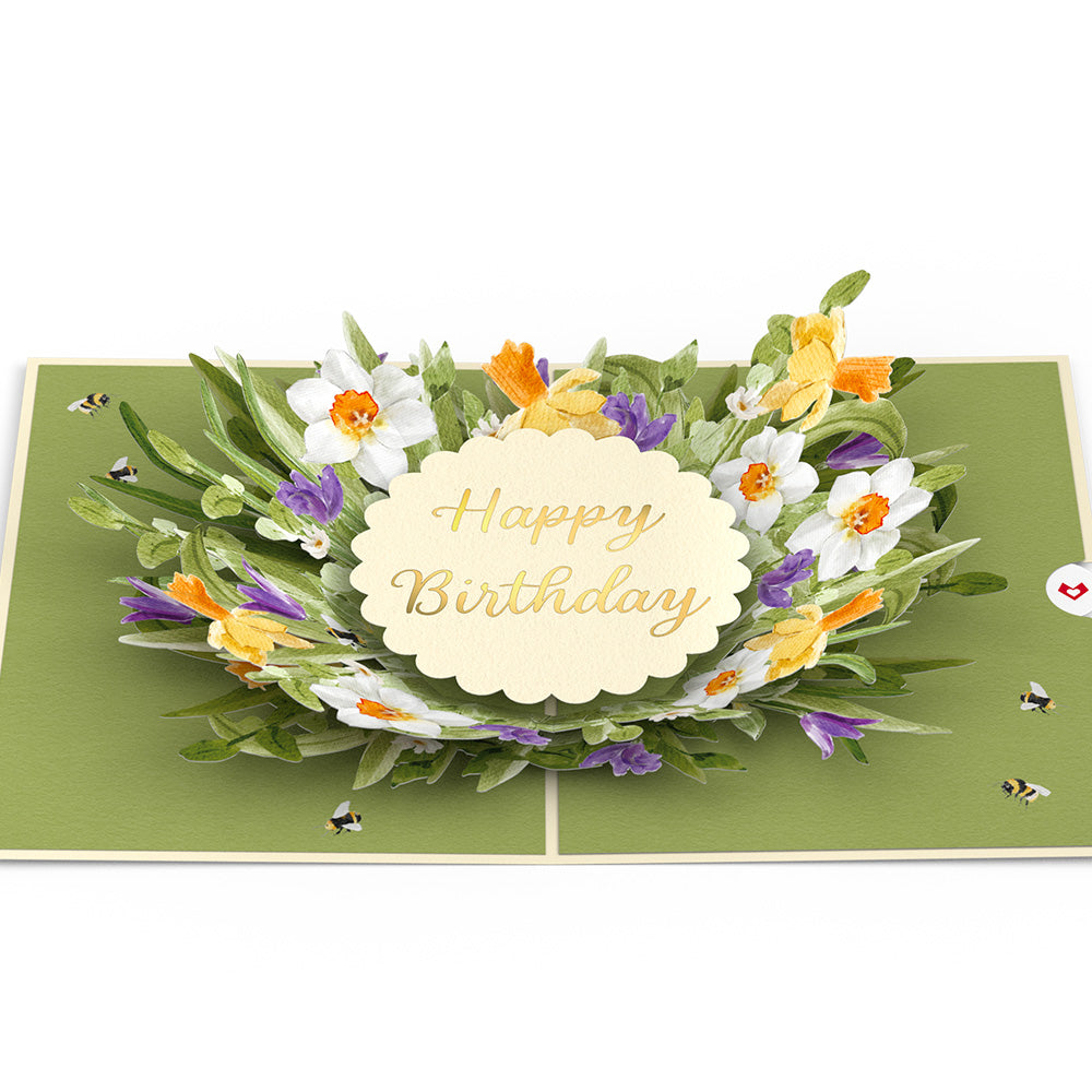 Description: Celebrate someone special on their birthday with this beautiful floral pop-up card featuring daffodils, tulips, and bees. Perfect for family, friends, and anyone who deserves a spring in their step on their special day.