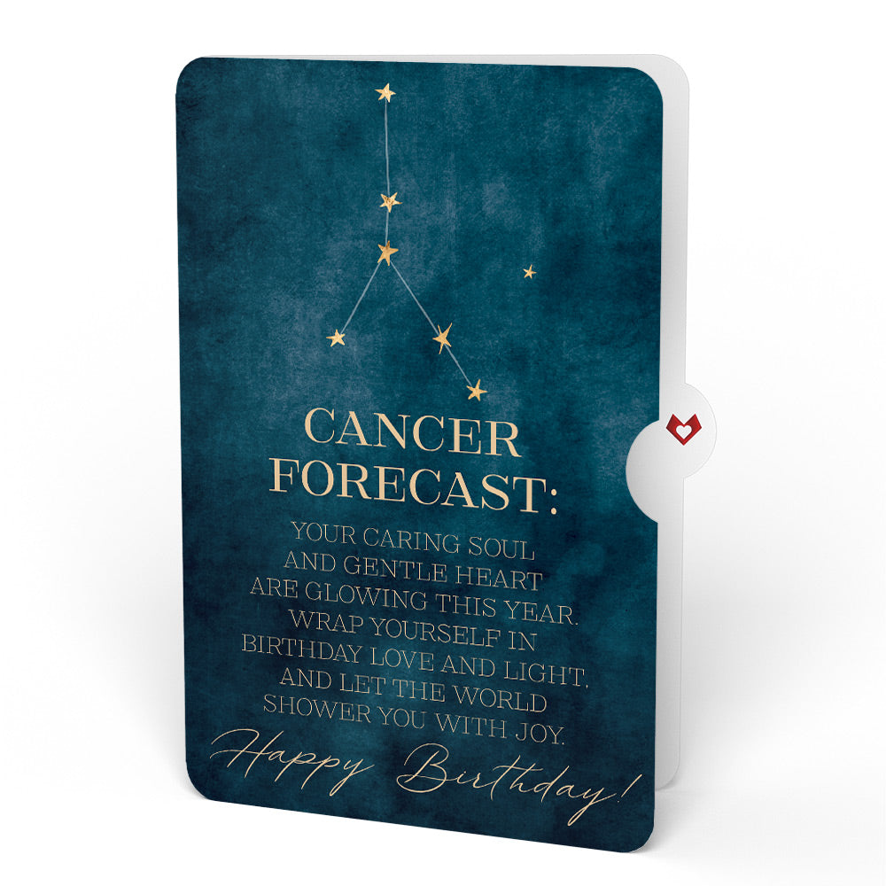 - Special Sentiment: The starry coordinating card reads “CANCER FORECAST: Your caring soul and gentle heart are glowing this year. Wrap yourself in birthday love and light, and let the world shower you with joy. Happy Birthday!” It’s a poetic and cosmic message that celebrates the nurturing nature of this water sign.