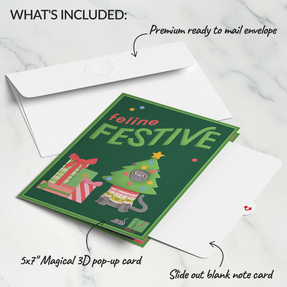 Description: Wish someone special a Merry Christmas with this funny cat pop-up card. Give it to your favorite feline-obsessed friend or family member, or anyone who loves a good pun for a holiday that’s sure to be truly purr-fect.