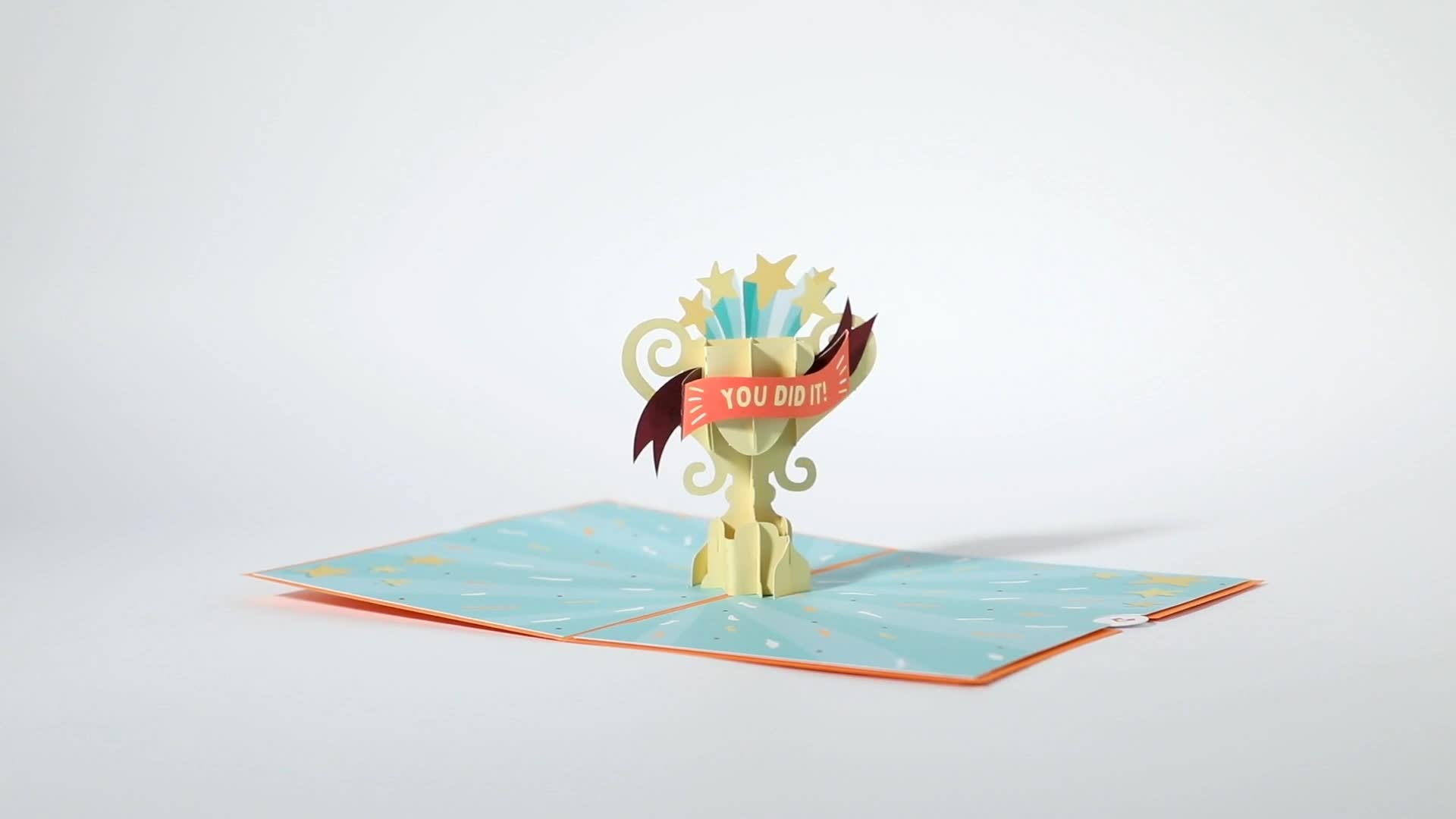 The Congrats Trophy pop-up card is 5 inches wide by 7 inches tall.
