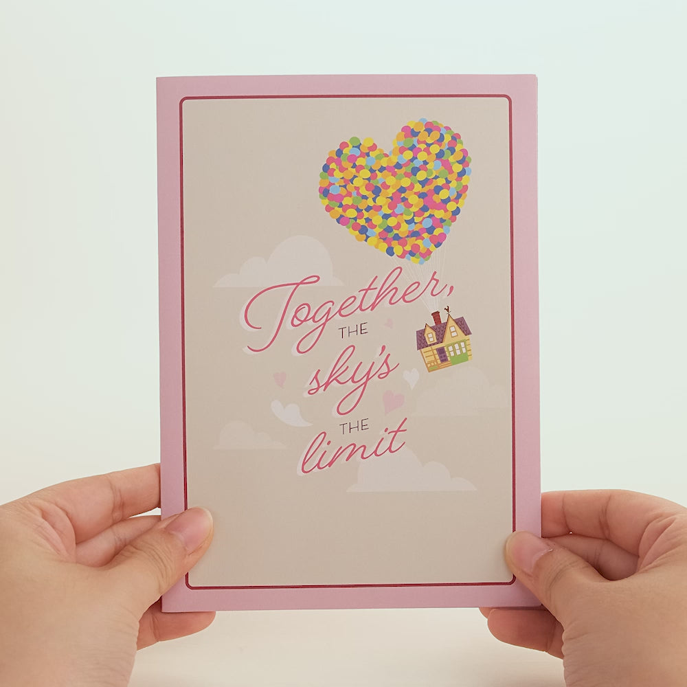 Description: Celebrate a love that soars to new heights with this heartfelt Disney and Pixar Up-themed card, featuring Carl and Ellie sharing their timeless adventure. Perfect for Valentine’s Day, an anniversary, or simply a spontaneous reminder, this greeting card is a special way to let them know that every moment together is the greatest journey of all.
