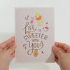 Description: This charming pop-up card features Disney’s Winnie the Pooh, Tigger, Piglet, and Eeyore in a whimsical scene beneath a vibrant orange tree in the Hundred Acre Wood. The front cover reads "Life is sweeter with you," making it a heartfelt gift for any occasion. It’s the perfect greeting card for a family member, friend, or anyone special in your life!