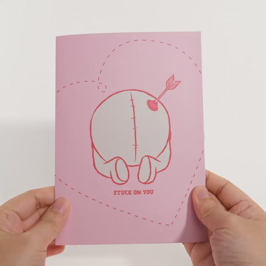 Description: This charming pop-up card showcases Disney’s Winnie the Pooh as a lovable cupid. The front cover features Pooh’s adorable backside with an arrow playfully “stuck” in it, paired with the sweet message “Stuck on You.” When opened, the intricate 3D Winnie the Pooh springs to life, complete with angel wings, a quiver of arrows, and a big heart behind him. It’s the perfect greeting card to share a heartfelt laugh and a dose of honey-sweet love with someone special for Valentine’s Day, an anniversary, or just because!