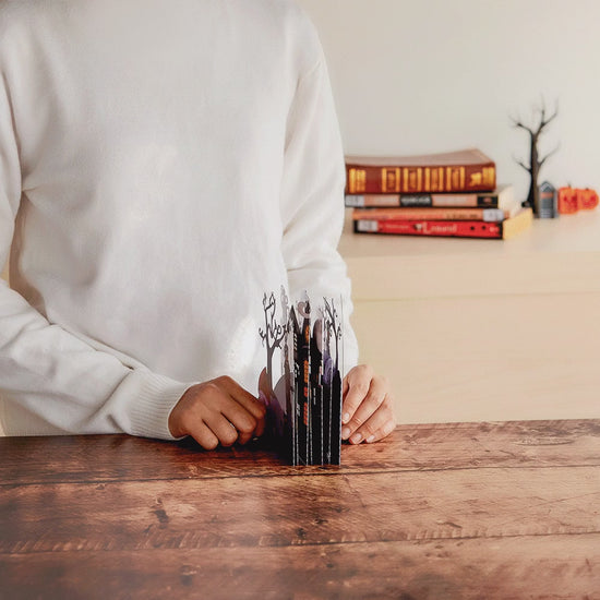 The Enchantingly Eerie Halloween Village Loooooong Card™ doubles as a decoration and a gift all in one. Send this unique item for Halloween or send it as a spooky birthday card instead.
