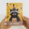 Description: This wildly fun pop-up card features a mischievous raccoon on the cover with the phrase “Go Feral” and opens to reveal the raccoon bursting out of a birthday cake, arms raised in full party mode. It’s perfect for that fun-loving friend, sibling, or coworker who knows how to celebrate loud and proud on their special day.