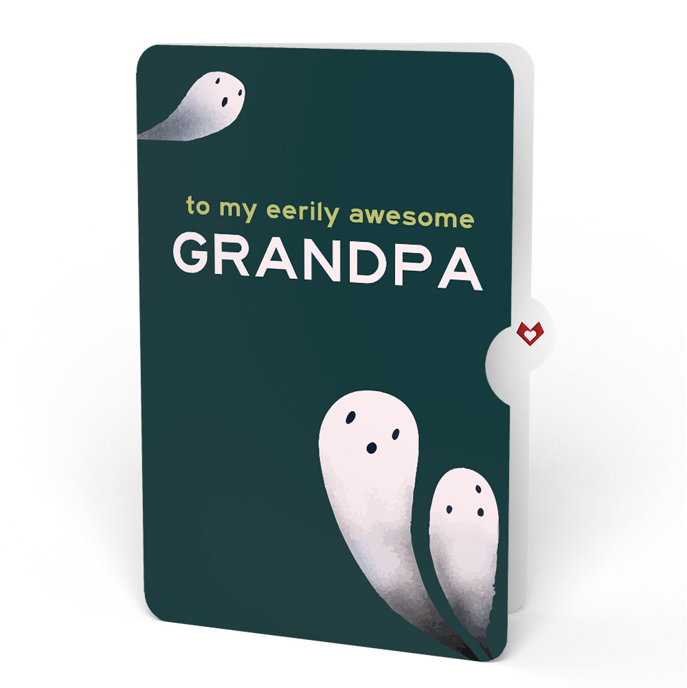 - Special Sentiment: The coordinating sentiment card reads "to my eerily awesome GRANDPA" in bold, playful text. The design features soft ghostly figures on a dark background, adding a touch of fun to the heartfelt message.
