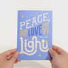 Description: This elegant Hanukkah pop-up card beautifully shares the spirit of the season. The cover features the message “Peace, Love and Light” in festive blue and gold accents. Inside, a stunning 3D white dove holding an olive branch soars across a starry sky, symbolizing hope and peace. With the message “Wishing you a bright and joyful Hanukkah season,” this greeting card is a heartfelt way to celebrate and send holiday wishes to loved ones.