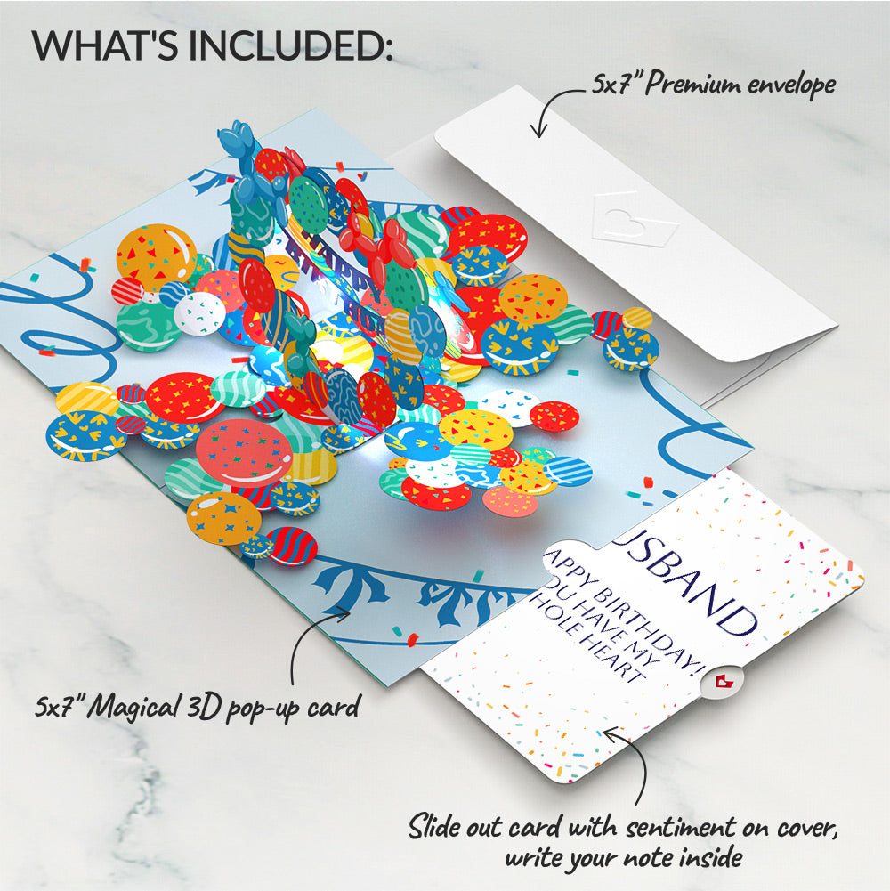 Happy Birthday Balloons Music and Lights Pop-Up Card and Sentiment Set for Husband
