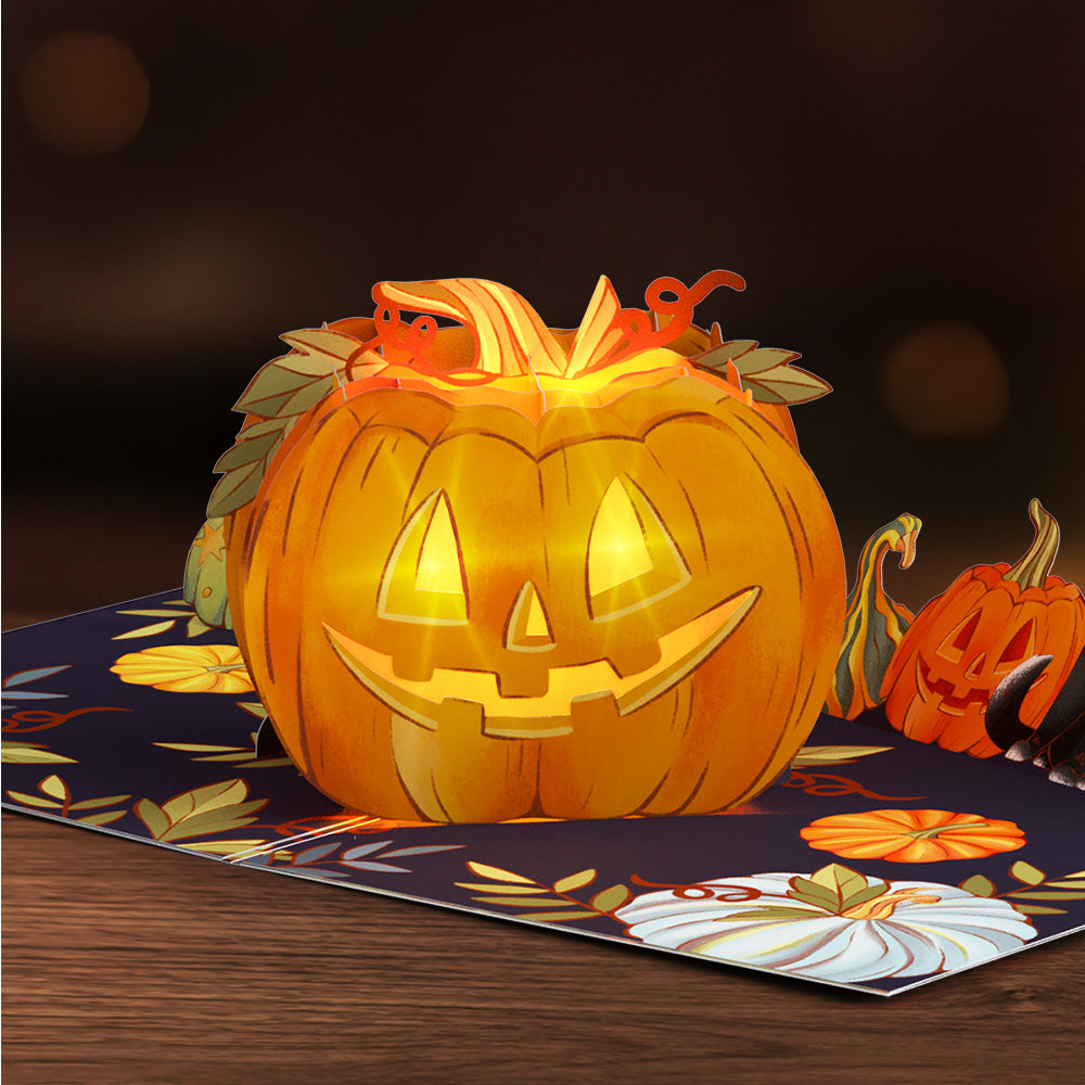 Happy Halloween Pumpkin Light-Up Pop-Up Card