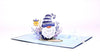 The Happy Holidays Gnome pop-up card is 5 inches wide by 7 inches tall.