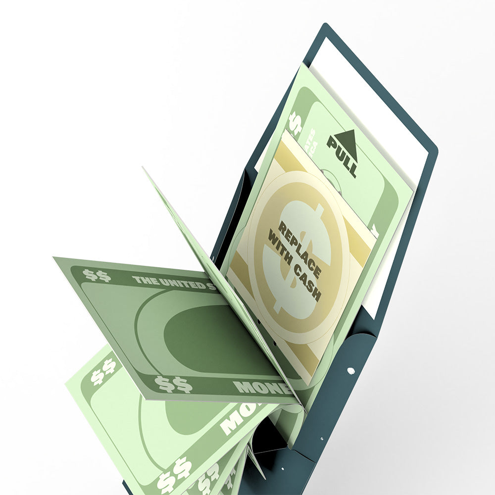 One pop-up Happy Holidays Snowman Money Holder automatically folds out when you pull on the tab