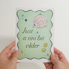 Description: This playful pop-up card features a stylish 3D martini glass overflowing with olives and the cheeky phrase “Just a tini bit older” paired with a festive “Happy Birthday” message. It's the perfect pick for a friend or loved one who enjoys cocktails, celebrates aging with humor, and deserves a toast on their special day.