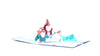 Send that snow day feeling with this punny gnome card! An illustration of a smiling gnome perched on a snowball stands out against the dark blue cover. “Let’s build a Sgnomeman!” is written in white print underneath. Inside, find the gnome standing proudly next to their gnomeman friend in a 3D pop up sculpture. A snowy scene stretches out behind the gnomes, rolling hills and pine trees completing a perfect winter day.