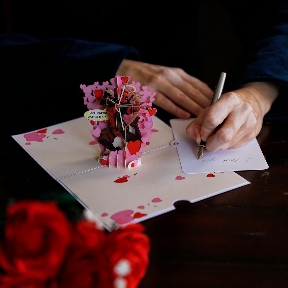 One crazy Lovepop with one blank envelope and the Lovepop Note, a little note card that slides away with your own personal touch.