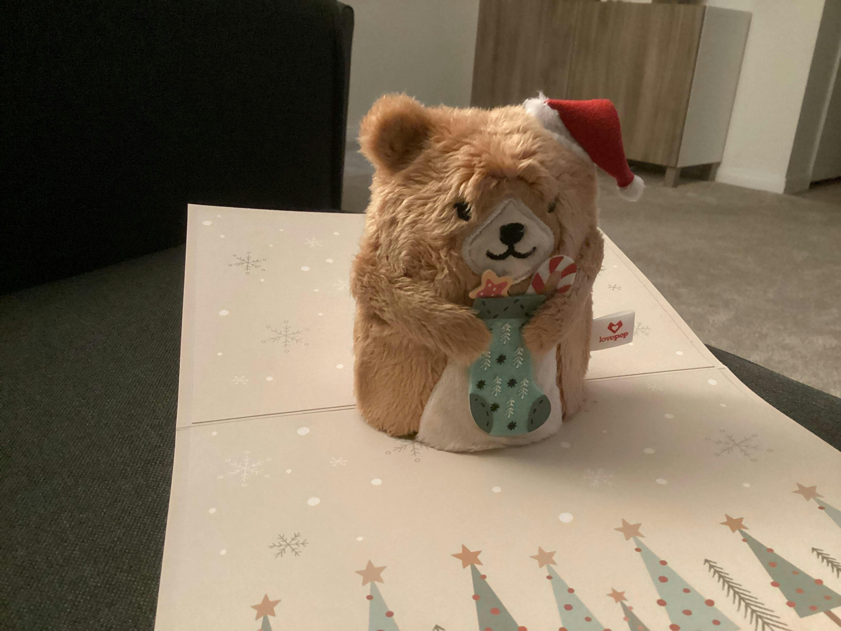 Description: Introducing Plushpop – a greeting card that opens to reveal a 3D pop-up plush character! This unique gift is a plush and card in one – the perfect way to surprise and delight someone special. Gift this adorable holiday bear to friends and family who need some Christmas cheer! Make every celebration memorable with plush that pops!