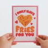 Description: Show your love with this playful pop-up card featuring a heartfelt message, "I Only Have Fries for You," on the cover with a heart made of fries. Inside, a vibrant 3D design of a striped french fry container bursts with paper fries and scattered red hearts, adding a fun and romantic touch. Perfect for your spouse or partner on Valentine’s Day, anniversaries, or any day you want to show love!