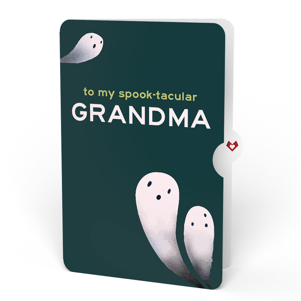 - Special Sentiment: The coordinating sentiment card reads "to my spook-tacular GRANDMA" in bold, playful letters. The card features soft ghostly illustrations, adding a whimsical touch to the heartfelt message.