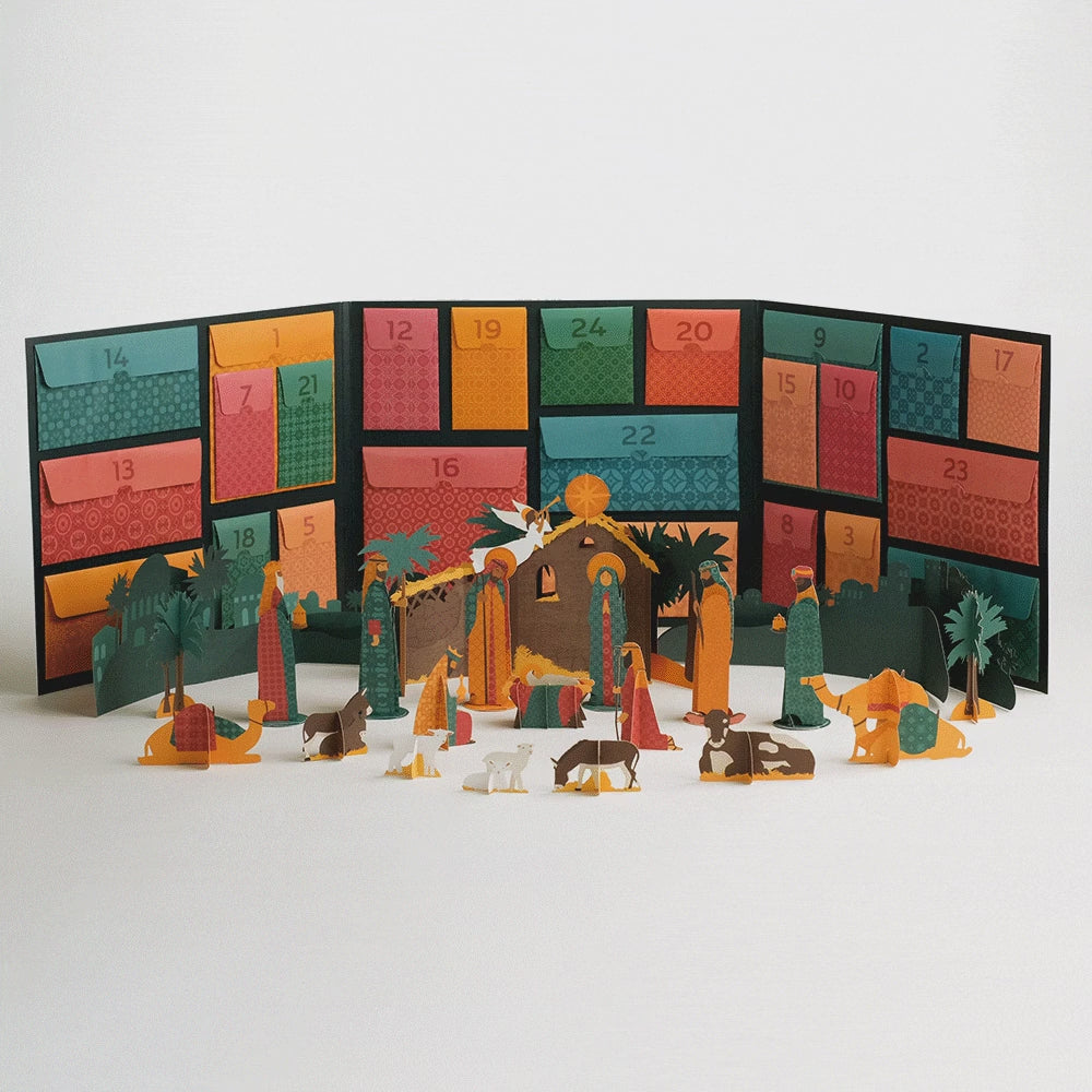 Count down to Christmas with a jewel-toned Nativity, beautifully crafted to celebrate the true spirit of the season. This day-by-day advent calendar features 24 pouches that open to reveal characters and props that together create a joyous Nativity scene. Open the first pouch on December 1st to begin the countdown to celebrate the birth of Jesus Christ!