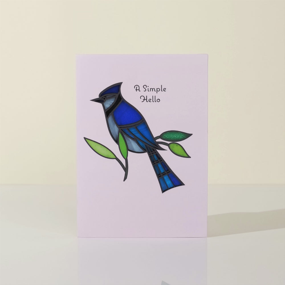 Simple Hello Blue Jay Suncatcher Card
