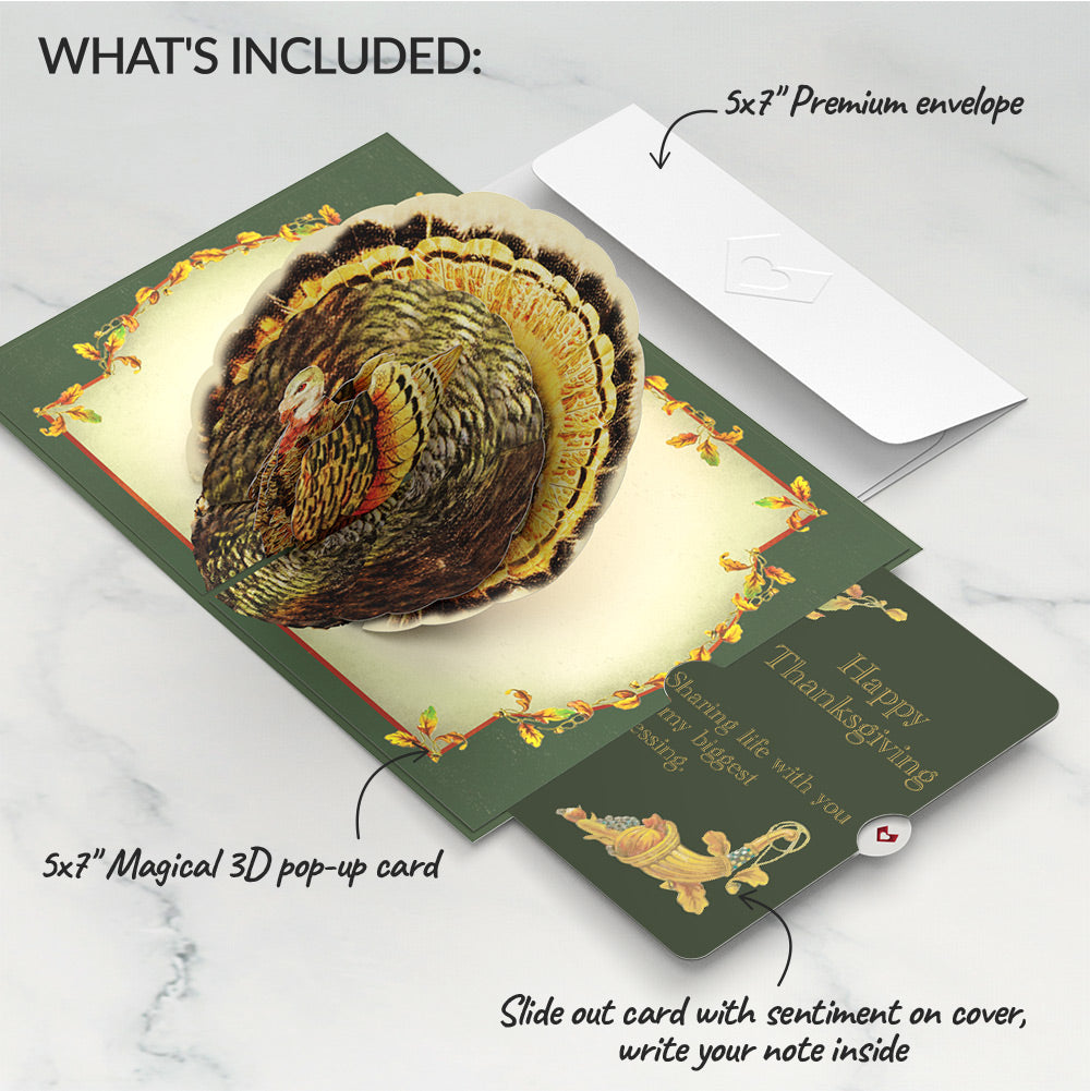 - Thanksgiving Greetings Vintage Turkey Pop-Up Card