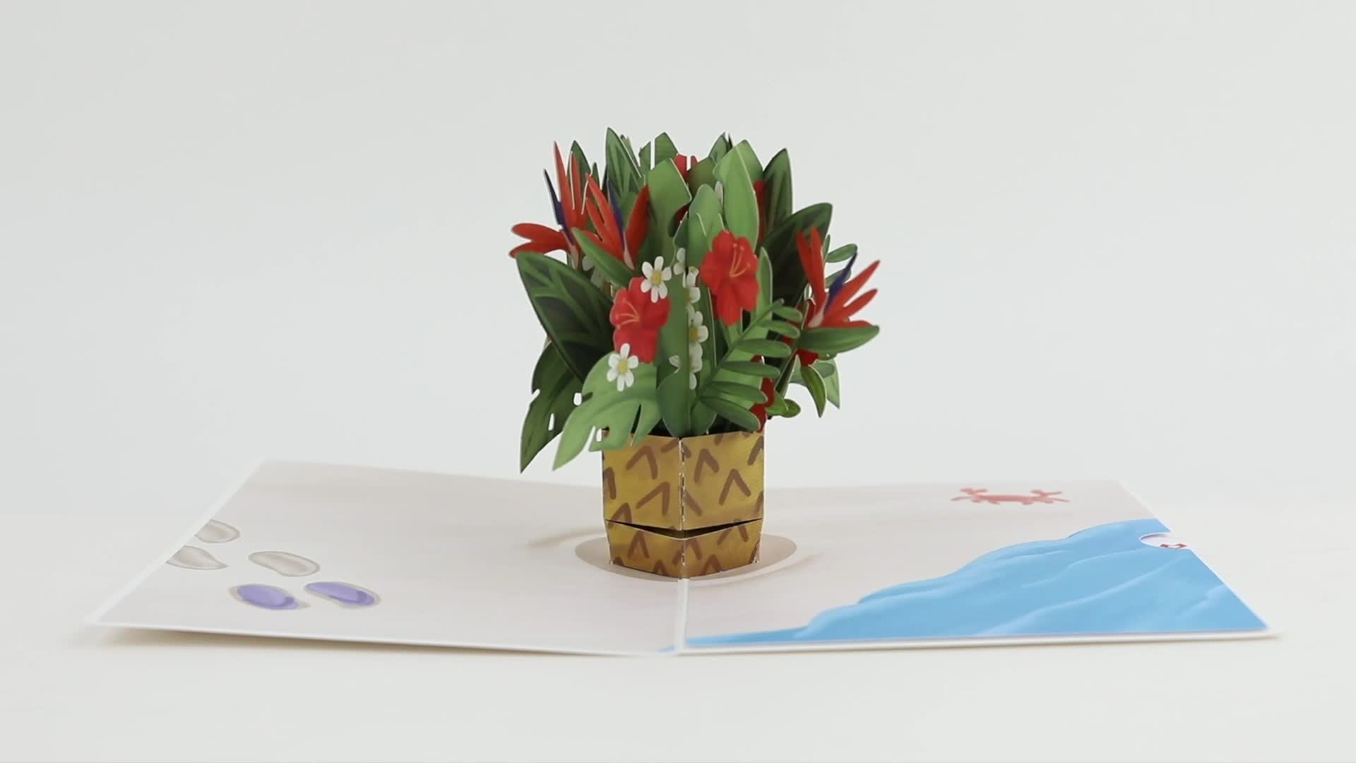 With summer just around the corner, this Tropical Flower Basket greeting card can be the perfect way to celebrate the season of sun and surf. Gift this pop-up card to your mother or your friend to say thank you and wish them a happy summer, or give it to someone special 'just because.'