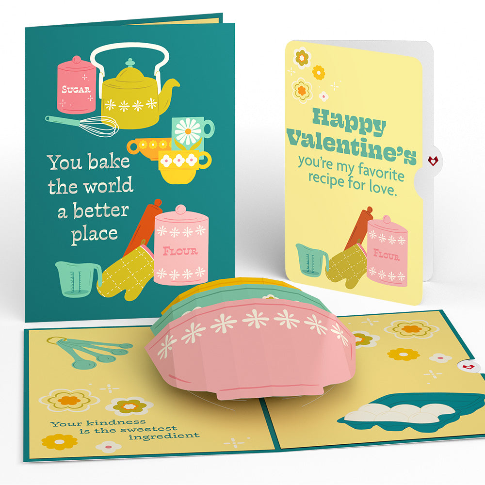 Whisk up a little love with a card that’s full of warmth, charm, and vintage sweetness. This baking-inspired pop-up and heartfelt message make the perfect recipe for a delightful Valentine’s Day. Featuring:
